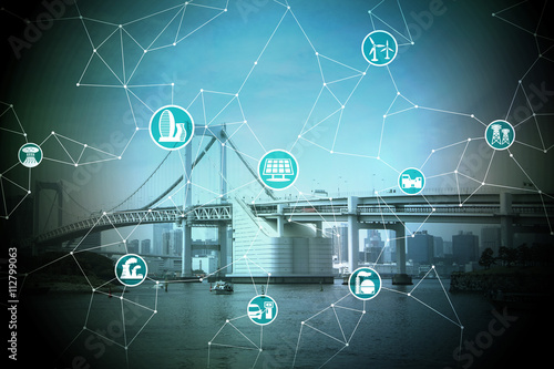 cityscape and bridge, smart energy, smart grid, smart city, smart building, abstract image visual