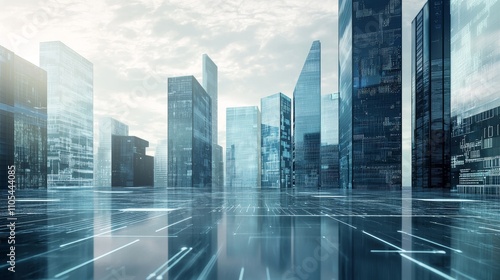 Cityscape of Technological Isolation - Urban Landscape Devoid of People and Filled with Digital Signals