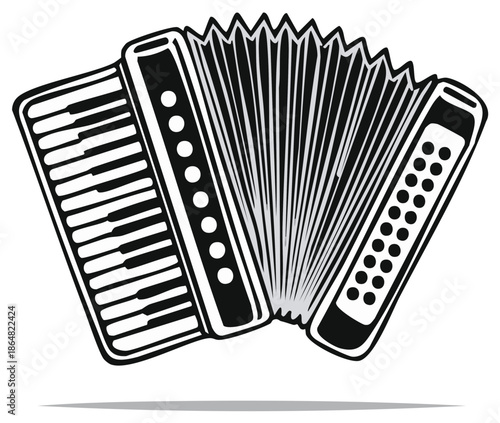 Classic Accordion Musical Instrument Illustration Black and White Simple Style