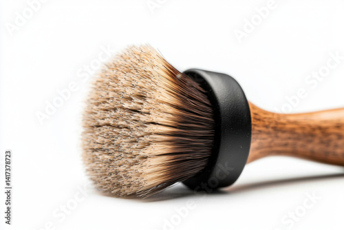 Classic barbers shaving brush with wooden handle high-quality grooming products studio setting close-up view artisan craftsmanship for men’s grooming essentials