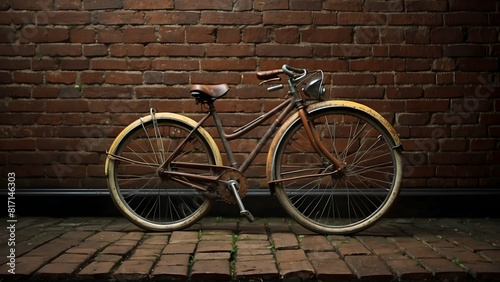 Classic bicycle against brick wall backdrop