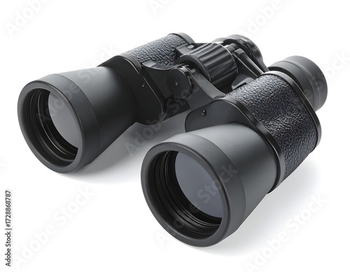 Classic Black Binoculars on Solid White Background