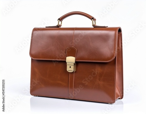 Classic Brown Leather Briefcase on white background