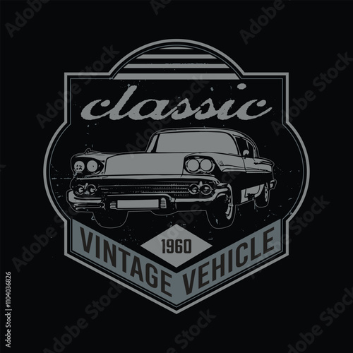 Classic Car Vintage T-shirt Design Vehicle Logotype tee.