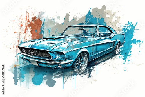 Classic Car Watercolor Painting, Generative AI