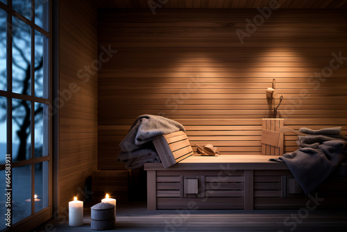 Classic Finnish sauna. Relaxation and spa treatments in a wooden sauna. Rest for soul and body.