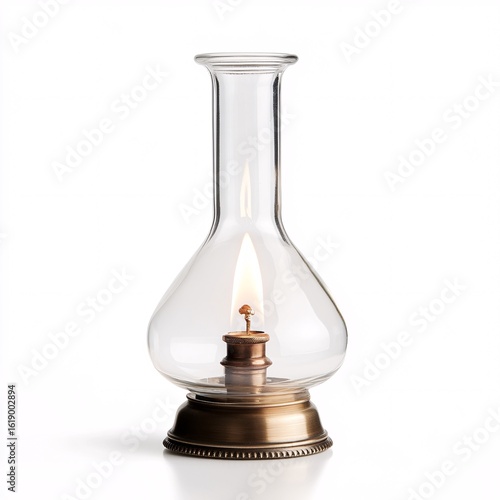 Classic Glass Oil Lamp with Gentle Flame Vintage Lighting on White Background