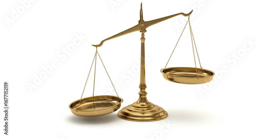 Classic Golden Balance Scales of Justice on Isolated transparent background, Law and Equality Concept