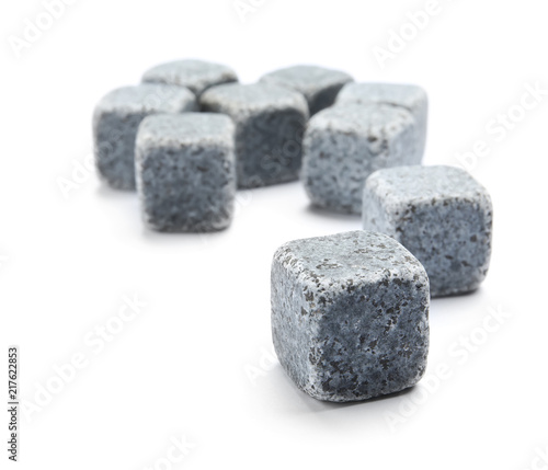 Classic grey whiskey stones on white background