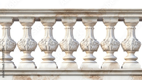 Classic Italian stone balustrade seamless pattern on white background