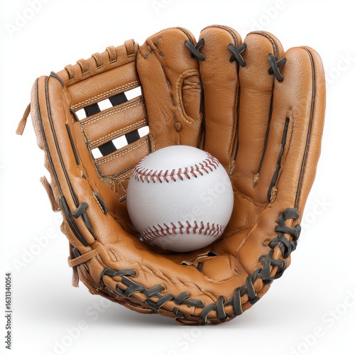 Classic Leather Baseball Glove Holding a White Baseball Close-Up