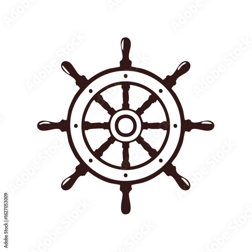 Classic Maritime Steering Wheel Isolated Graphic Element, Boat Navigation Device