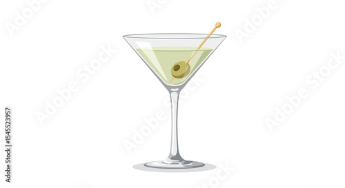 Classic Martini Glass with Olive Garnish – Flat Vector Cocktail Illustration on Green