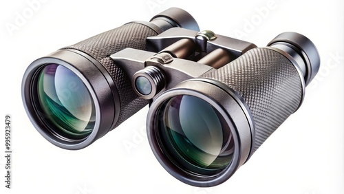 Classic metallic binoculars with textured grip are focusing on something interesting