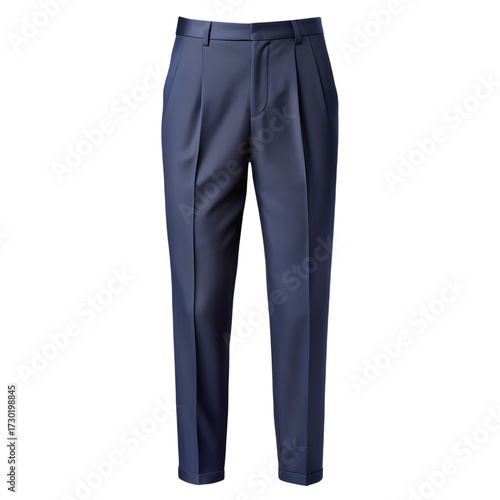 Classic navy blue tailored trousers for men, isolated on transparent background