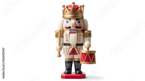 Classic nutcracker with drum isolated on the white background