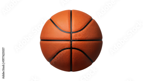 Classic orange basketball with textured surface and black seams, perfectly isolated PNG on transparent background, ready for sports design projects