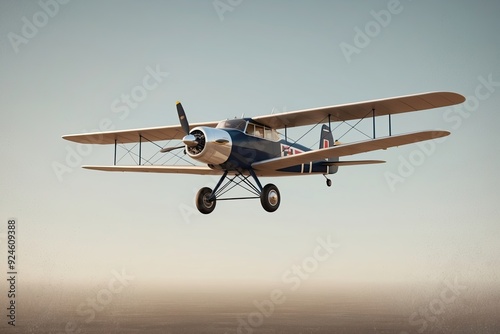 Classic Propeller Aircraft Soaring Over Simple Background in Vintage Aviation Themed 3D Visualization