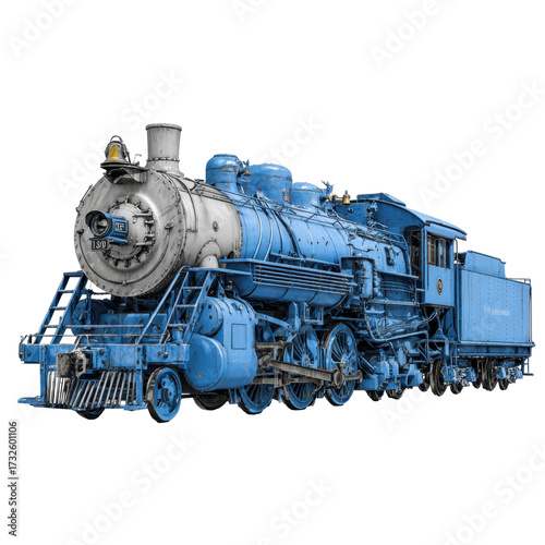 Classic steam locomotive in vibrant blue color at a railway museum showcasing transportation history