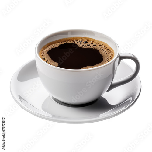 Classic White Coffee Cup Filled With Black Coffee On Saucer Isolated On Transparent Background