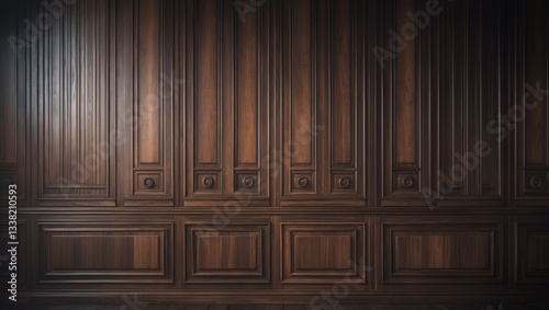 Classic wood panel wallpaper featuring a brown cabinet wall.