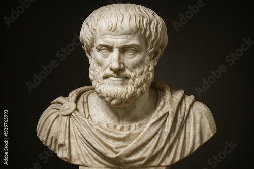 Classical marble sculpture of ancient Greek philosopher Aristotle showcasing historical artistic mastery
