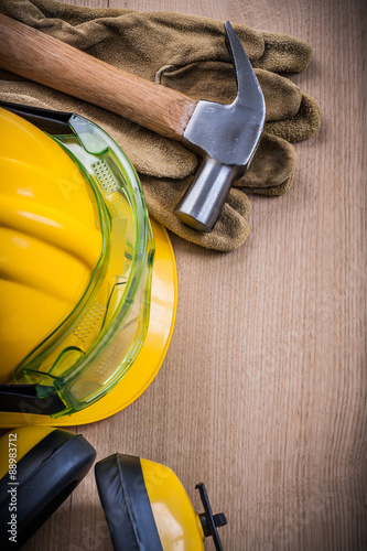 Claw hammer goggles leather safety gloves building helmet earmuf