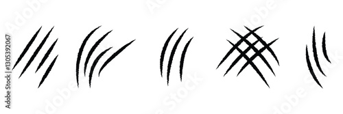 Claw scratch. Animal claws icon set. Black claw marks. Claw mark vector silhouette set. Claws beast ripped marks.