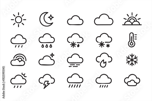 Clean forecast icon pack for weather mobile apps and website user interfaces