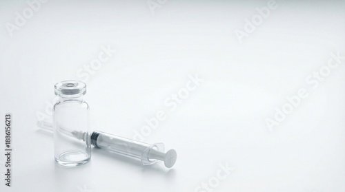 Clean Medical Still Life with Empty Vial and Syringe on White Background Copy Space