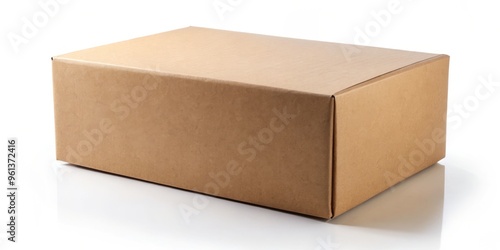 Clean minimalist packaging design concept features isolated blank cardboard box on a white background, emphasizing