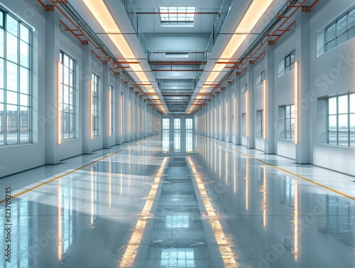 Clean modern factory, white background