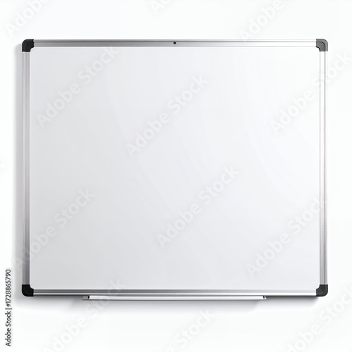 Clean presentation surface: A versatile blank whiteboard against a pristine white background