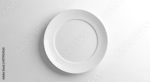 Clean white plate isolated on white background overhead view copy space