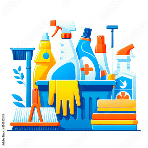 Cleaning equipment and products modern vector illustration isolated on a white background