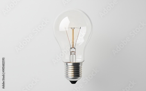 Clear glass lightbulb levitating against a solid white background. The bulb is centered and well-lit, showcasing its clear glass structure and metallic base