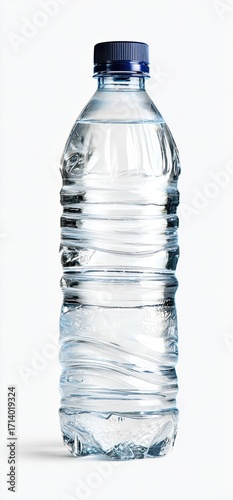 Clear plastic water bottle against white background