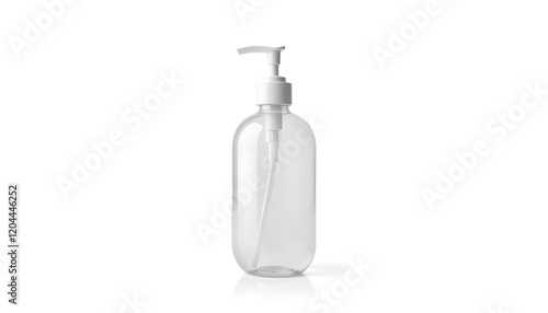Clear pump bottle on white background