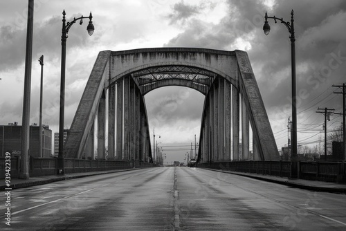 Cleveland Bridge. Vintage Black-and-White City Architecture on Street Background