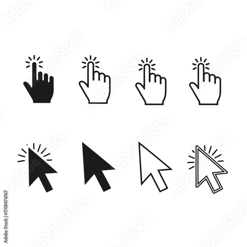 Clicks of Digital Precision: a collection of hand cursors and computer pointer icons, perfect for web design, application design, user experience, and graphic design projects.