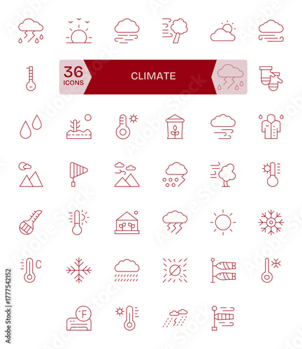 Climate Vector Graphics featuring 40 Thin Line Pixel Optimized High Resolution Designs