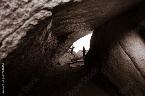 Climbers bouldering, Buttermilks, Bishop, California, USA