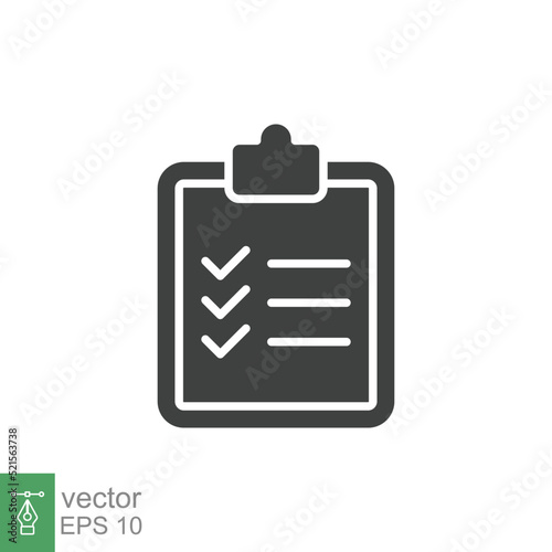 Clipboard checklist icon. Simple solid style. Document with checkmark, business agreement concept. Glyph vector illustration isolated on white background. EPS 10.