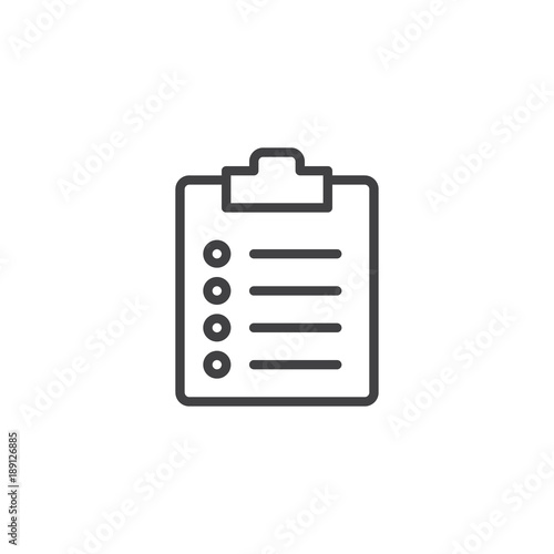 Clipboard checklist line icon, outline vector sign, linear style pictogram isolated on white. Symbol, logo illustration. Editable stroke