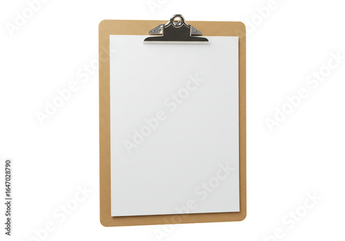 Clipboard with blank paper sheet ready for text or design template