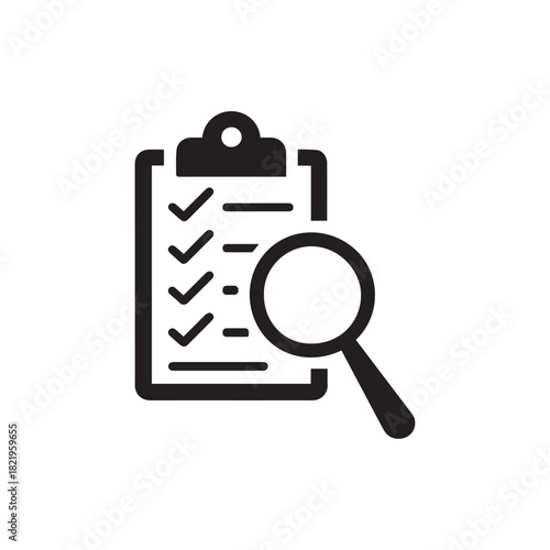 Clipboard with checklist and magnifying glass icon representing inspection and verification
