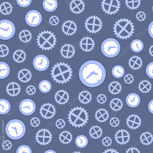 Clock and Gear Seamless Pattern Isolated on Blue Background