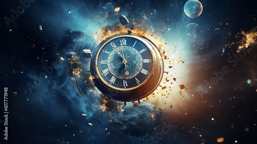 clock in space, time concept, Generative Ai