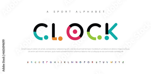Clock Minimal font creative modern alphabet. Typography with dot regular and number. minimalist style fonts set. vector illustration