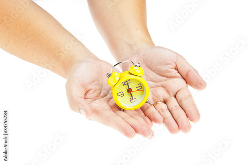 Clock on hand as time management concept